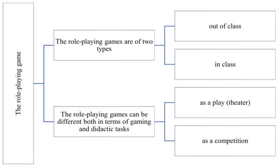 In Figure 5, we show the classification of the role-playing game in teaching. Obviously, this is only a part of a whole variety of forms that individual teachers can adopt/invent.