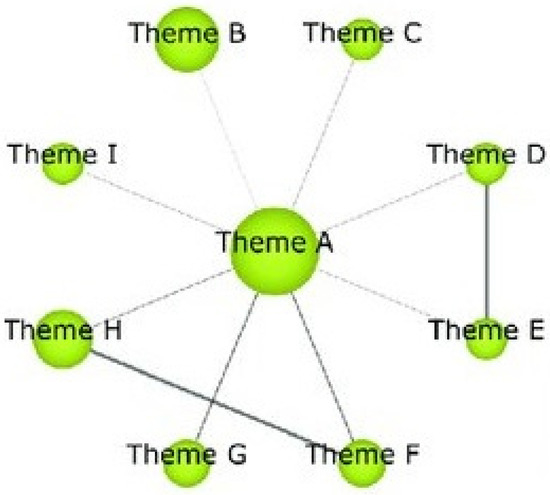 Reproduction: The diagram quadrant was designed with the purpose of establishing the terms according to their scientific production. The diagram was divided into four quadrants (Q) (Figure 4). The top right quadrant (Q1) highlights the most prominent and driving themes, the top left quadrant (Q2) highlights the more solitary or disused themes, the bottom left quadrant (Q3) highlights the disappearing or emerging themes, and the bottom right quadrant (Q4) highlights the cross cutting, multidisciplinary or underdeveloped themes. The programme itself classified these themes according to their density (internal strength) and the connectivity between the different nodes and networks (centrality) [116]. A topic network was also developed (Figure 5) that corresponded to the linking of terms to the main research topic. Figure 6 shows a map with the evolution of terms in the three periods.