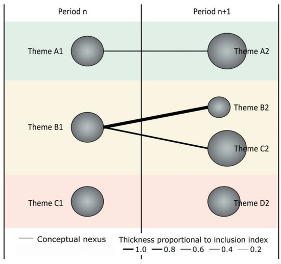 Determination: In order to classify and analyse the evolution of publications and their nodes, time periods were established. These periods were designed according to the following criteria: a balance between the volume of documents and the division of three time periods. These periods ran as follows: P1 = 2003–2016; P2 = 2017–2019; and P3 = 2020–2022. For the authors’ study, however, only one time period, 2003–2022, was used, along with the rest of the Scratch analysis. The most important themes, together with the keywords for the different periods, were calculated using the strength of association between them.