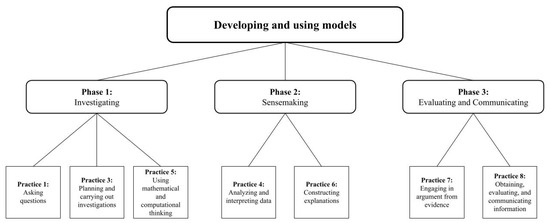 Figure 1 shows Chen and Terada’s [7] comprehensive model and shows modeling as being part of the sensemaking phase, but many scholars argue that modeling should be the centerpiece of the science curriculum because it has the potential to tie all other science practices together [14,15,16].