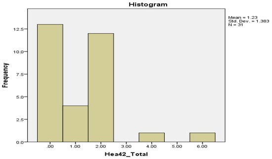To test whether the distributions of the results are normal or not, the Shapiro–Wilk test of normality was applied on the results from all subscales in all age categories. Findings indicated that most distributions are NOT normal. An example from these results is the results of the health and safety skills, which has 10 distributions for the 11 age categories. As the results reveal (Table 10), only one distribution (24 months) is normally distributed. An example of the distributions is represented graphically in Figure 1.