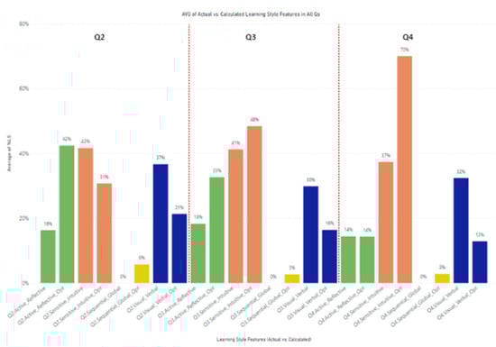 Comparing actual and calculated learning style features in Q2, Q3, and Q4.