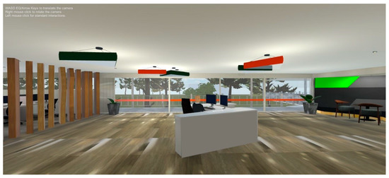 Lighting was a critical factor in creating a realistic environment. The main source of light for the entire scene was the directional light combined with flare effects that simulated the sun. The lights in the reception area were point lights with adjusted colour, intensity and range. However, through the trial analysis of the VR, the point lights proved to have a flaw. When baked, the point light source did not provide sufficient lighting for the scene and failed to present realistic lighting. During the week four project meeting, the developing VR was tested. The programmer also demonstrated the issue with the lighting. The project team arrived at the solution of inserting multiple point lights between the floor and the roof with lower intensity and higher radius values. Finding the optimal values for light baking required analysis through much trial and error. In the end, both processes helped in achieving realistic environment replication. Figure 1 is a screenshot via the user (student) interactive VR environment, which shows the reception welcome desk. Figure 2 is a screenshot via the user (student) interactive VR environment, which shows the recreated meeting room off the foyer that students can move into and explore.