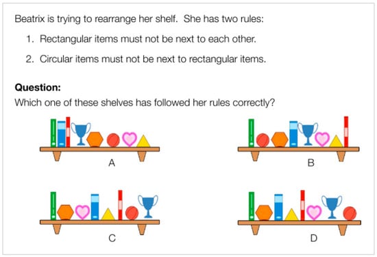 - Blokhuis, D.; Millican, P.; Roffey, C.; Schrijvers, E.; Sentance, S. UK Bebras Computational Challenge 2016 Answers. 2016. Available online: http://www.bebras.uk/uploads/2/1/8/6/21861082/uk-bebras-2016-answers.pdf (accessed on 1 April 2023).