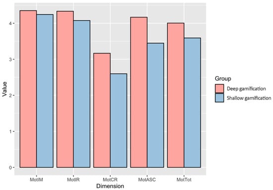 | Experimental (deep gamification) | 38 | 0.57 (0.16) | 0.69 (0.18) | 0.13 |