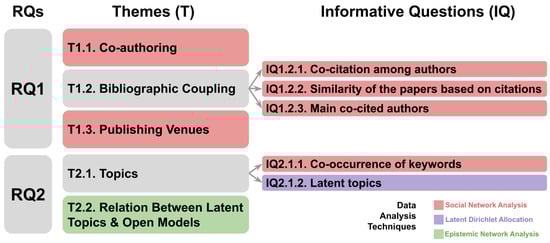 We further divided each RQ into themes (T) and, when necessary, into informative questions (IQ), as shown in Figure 2. To respond to each T/IQ, we conducted the following analyses.