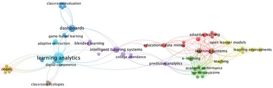 | Assessment Frameworks | Ref. [38] presented an implementation of a competency assessment framework in university settings, called SCALA.Ref. [39] proposed an assessment framework for serious games that informs teachers on the competences acquired by learners. | learning, students, dashboard, competences, tutor, analysis, level, time, errors, task. | 9 |