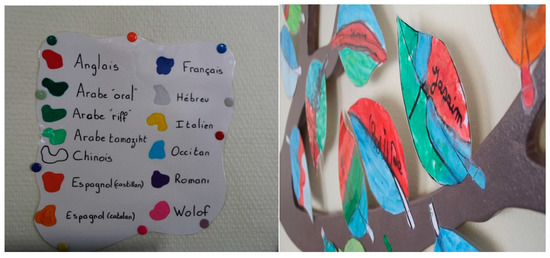 Other resources such as “Languages et grammars in ‘Ile-de-France’” (https://lgidf.cnrs.fr, URL, accessed on 27 April 2023) provide information on the linguistic characteristics of the pupils’ different languages. The aim of such a resource is also to be able to communicate with pupils, even in the absence of language mediators (oral and written interactions of everyday life are offered in various languages), or to anticipate possible transfers and difficulties in the language of schooling, depending on the specificities of the languages known by the pupils. The aim is in no case to know their languages in order to ‘correct’ them or teach them. The interest is above all psycho-affective and cognitive: it is important to recognize these experiences in order to reinforce benevolence, particularly linguistic benevolence [47] when teaching a new language, or simply through a language (such as in art classes). Even then, J. Aden and S. Echenauer [54] refer to the fact of being able to translanguage from one modality of action (painting, dancing, speaking), to others, in various languages.