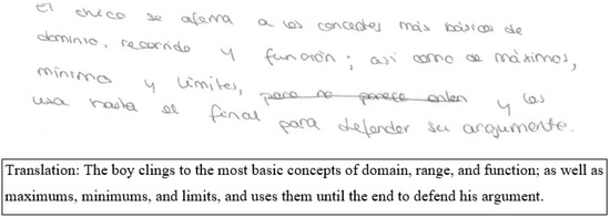 Therefore, 25 PSTs (65.8%) of 38 do not demonstrate an awareness of how the task’s semiotic register influences Juan David’s strategy. In the case of Figure 3, it is observed that the PST4 evaluates and lists some of the mathematical notions involved in the situation presented: domain, range, function, maximum, minimum, and limit, but does not mention anything about the task’s register.