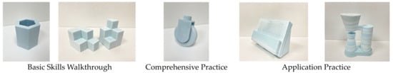 The implementation of traditional model-making courses is oriented towards ‘learning objectives’, with each objective representing a specific manual technique. Through ‘repeated practice’, the goal is to learn and become proficient in various manual skills. The exercises for each task are practiced progressively, starting from the basics, and gradually move toward more advanced techniques, with the ultimate goal of achieving the desired standard. Those who fail to meet the standard will redo the exercise to ensure that each learning objective is learned thoroughly. The content of traditional model-making courses is shown in Table 1.