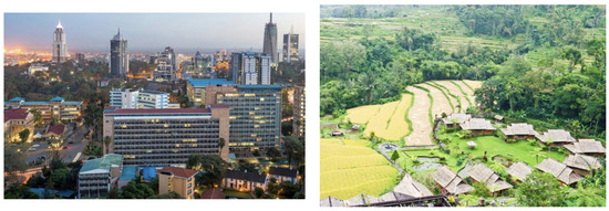 Indirect experience of nature, although involving actual contact, occurs in created and highly controlled environments that depend on ongoing human management and intervention. Indirect experience of nature is highly structured, organized, and planned; it may occur in settings such as zoos, parks, museums, and botanical gardens. In addition, indirect experience takes place in situations where an adult guides children’s observation [9] (p. 65). The concept of indirect experience of nature was applied to textbook visuals that depicted landscapes and objects, in addition to people in a portrait-like manner. Basically, these visuals show that ‘this is how it looks here’ in the same way people go to the zoo to see what different species of animals appear to be. In order to avoid confusion with Kellert’s terminology, this category is named ‘landscape visuals’. Two examples of landscape visuals are given in Figure 2.