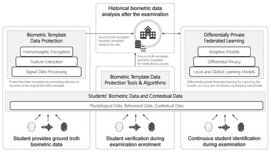 - Fidas, C.; Belk, M.; Portugal, D.; Pitsillides, A. Privacy-preserving Biometric-driven Data for Student Identity Management: Challenges and Approaches. In Proceedings of the ACM User Modeling, Adaptation and Personalization (UMAP 2021), Utrecht, The Netherlands, 21–25 June 2021; pp. 368–370. [Google Scholar]