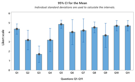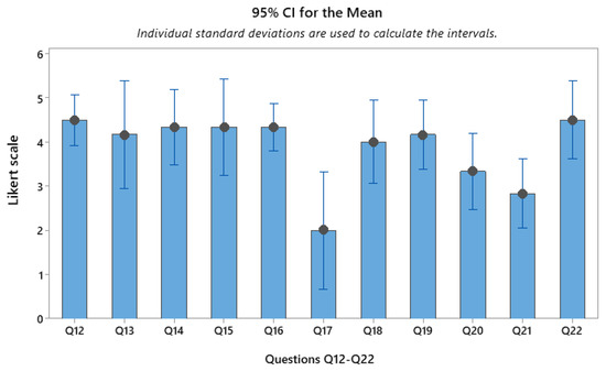 Figure 3 shows the main points for the two last aspects from the survey (Table A4), corresponding to Q12–Q22.