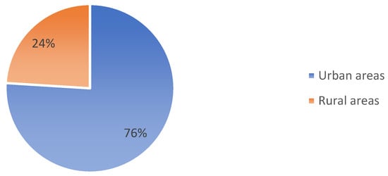 The data collected from the students shows that more of those from urban areas leave the water running from a tap when brushing their teeth compared to those from rural areas, as shown in Figure 6. Urban areas are better supplied with improved water and sanitation compared to rural areas [,,]. In countries such as Malawi, 37 per cent of households in rural areas spend 30 min or more fetching drinking water compared to 13 per cent of households in urban areas. The long distances in rural areas, mainly walked by women and children to collect water from boreholes and protected springs for home use, enable them to make more conservative use of the water. In urban areas, water is distributed from the source to the people’s homes through piped systems. For example, in 2020, the piped water coverage in urban areas of Uganda stood at 78.6 per cent []. Since water is more accessible for people, some urban residents can be inefficient when using water at home.
