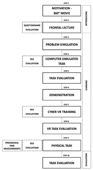 Especially with the use of immersion technologies, we need to consider that the time required to use VR glasses, the impact on the psychosomatics of the individual, and the risk of eye injury if used improperly can be problematic. The question is that of how can individualized learning be incorporated in order to minimize the negative effects. The appropriate time at which the VR environment can affect an individual’s psychosomatics has not been fully explored. One study investigated the use of a VR environment during an extended period of time. It found that individual users experienced migraines, nausea, and anxiety. These problems mainly occurred at the beginning, but with long-term use, participants gradually overcame the negative side effects and initial discomfort [75]. In the future, the aforementioned topic of discussion should be investigated in more detail. In practice, learners inappropriately use a PC or a smartphone for educational purposes, and the same applies to VR technologies. To deliver education with modern technologies, we propose the concept of micro-trainings limited to 5–10 min. In this way, we reduce the impact on the individual’s psychosomatics, the strain on the eyes, and in the long run, also the cognitive load for the individual.
