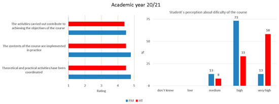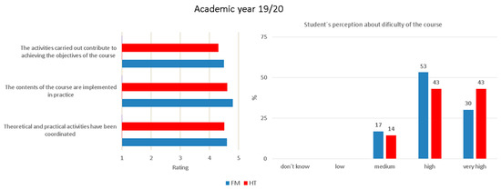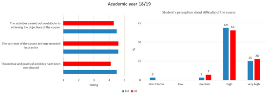 Despite the students’ perception of the difficulty of the FM and HT courses being high or very high, the evaluation of the experimental component was quite positive, being more than four out of five in all the cases.