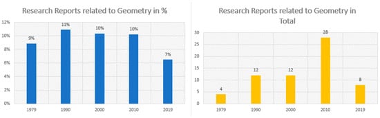 The findings in the area of geometric contents, topics, and approaches can be categorized concerning the following topics and investigations: