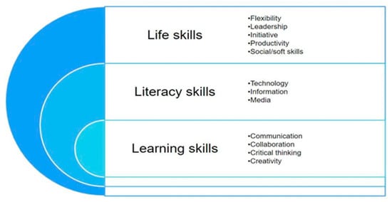 More specifically, the new patterns of learning are not limited to distinct skills’ building but to a holistic approach with the ultimate goal of building a skillset that promotes lifelong skills and competences. The three levels of skills involve (a) learning skills, the 4Cs skills, namely communication, collaboration, critical thinking, and creativity; (b) literacy skills, including computing and ICT literacy, and information and media literacy skills; and (c) the broader concept of life skills that include socio-cultural awareness and soft skills, flexibility, leadership and initiative, and productivity.