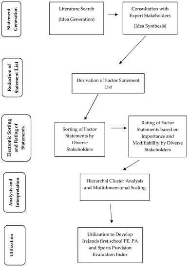 A concept mapping methodology involving the generation of factors relevant to school physical education, physical activity and sports provision and their subsequent thematic and numeric rating and sorting was utilized to underpin the development of the provision evaluation index [42]. Concept mapping is a standardized procedure that initially requires expert stakeholders to engage in brainstorming exercises, idea generation and idea synthesis [43] to identify a comprehensive list of relevant factors underpinned by the topic of interest (e.g., factors which impact school physical education, physical activity and sports provision). Subsequent tasks require a larger group of participants to rate these factors based on importance and modifiability and sort these factors into clusters that are meaningful to them. Respondents were multi-disciplinary, including physical education teachers, school principals and support staff, undergraduate and postgraduate physical education students, and national and international experts in the field. The data acquired through the brainstorming, rating, and clustering of relevant factors underpinned by provision were essential to integrate multi-disciplinary stakeholder knowledge and experience into the conceptualization of the provision evaluation index.