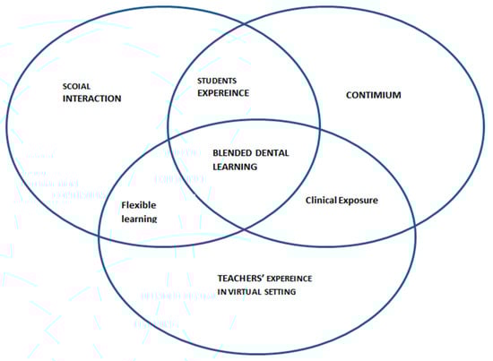 - Khalaf, M.E.; Ziada, H.; Abubakr, N.H. The Dental Educational Environment of Online and Blended Learning during COVID-19, and the Impact on the Future of Dental Education. Dent. J. 2023, 11, 41. [Google Scholar] [CrossRef]