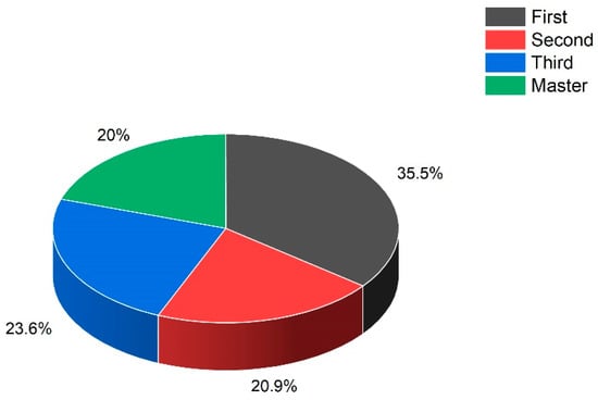 As can be seen from Figure 7, the distribution of students over the course years was fairly homogeneous, except for a prevalence of first-year students.