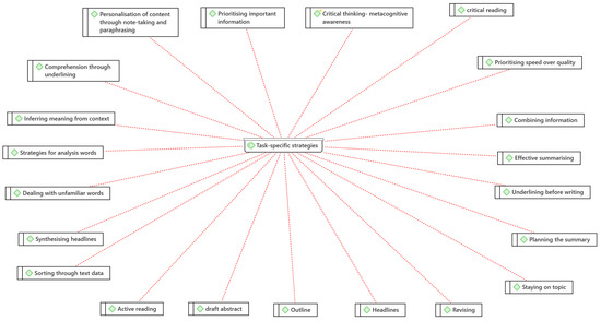 Thematic map of task-specific self-regulation strategies deployed by students in making a summary of a text for school language class.