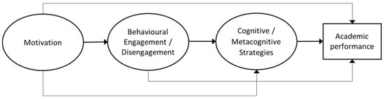 Therefore, Figure 1 proposes a conceptual model that contemplates the connection between the variables, motivation, behavioral engagement/disengagement, learning strategies (cognitive and metacognitive), and academic performance.