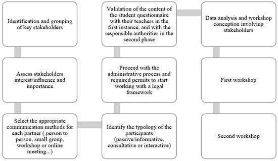 Through the utilization of action research methodology and the implementation of interactive workshops, this project aimed to enhance environmental education and promote sustainable practices among high school students. By fostering inclusive participation and empowering students to become active agents of change, the pedagogical garden initiative sought to cultivate a sense of environmental responsibility and create a lasting impact within the school community. A schematic diagram summarizing the order of the steps is presented in