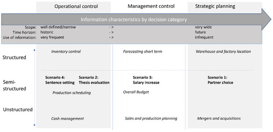 To differentiate the scenarios, we use the framework from [29] (cf. Figure 1). By 1971, information systems were analyzed based on categories and focused explicitly on semi-structured decisions for the decision-making through information systems.