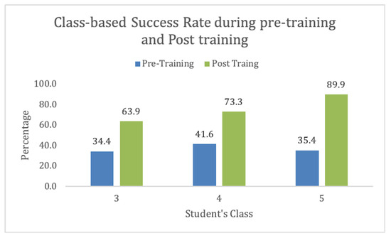 We had students from 3rd grade, 4th grade, and 5th grade. We found the training more effective for 5th grade. Also, these kids were old enough to understand the concept. This also depicts that the suitable age group for this activity in Pakistan is 11–13. These results are shown in Figure 8.