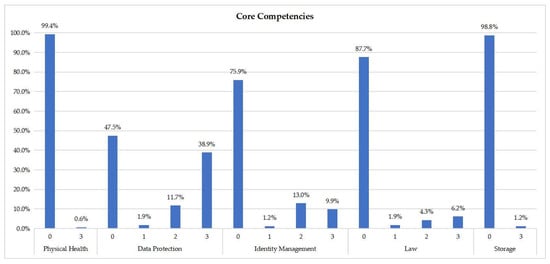 As far as the specific digital skills (attributes) are concerned, none of them are covered by more than 60% of the courses. The attribute that is covered by most of the courses is “data analysis” (59.87%), which belongs to the assessment strategies category. The least-covered attribute is “physical health” (0.62%), which is part of the core competences category.