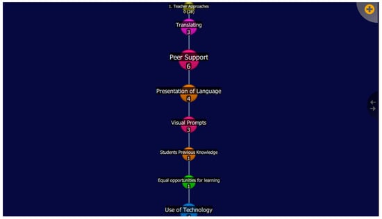 In terms of evidencing learning attainment, assessment and student data collection were the most commonly used methods [,]. These methods align with the importance of learning analytics in monitoring and assessing EAL learners within English lessons []. Participants also suggested revising student entry requirements to minimize language differences between learners and reduce pressure on class teachers [,].