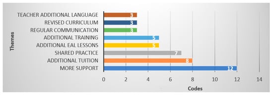The fourth research question sought proposals to improve attainment results. Participants suggested revising entry requirements, providing more support to teachers, offering additional EAL lessons, revising the curriculum, and providing further training.