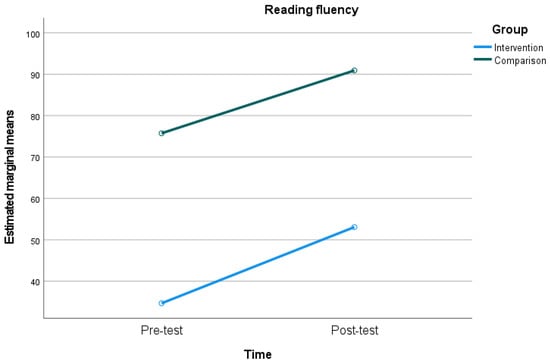 Interaction effect for reading fluency when comparing the intervention and the control group.