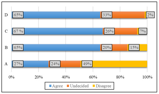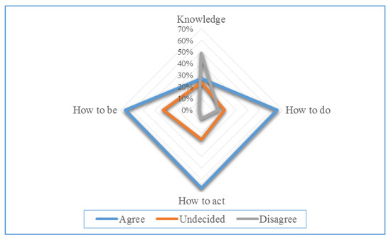 In the results presented, we can attribute the concepts “knowledge”, “how to do”, “how to be”, and “how to act” to the different proposals “A”, “B”, “C”, and “D” as described below: