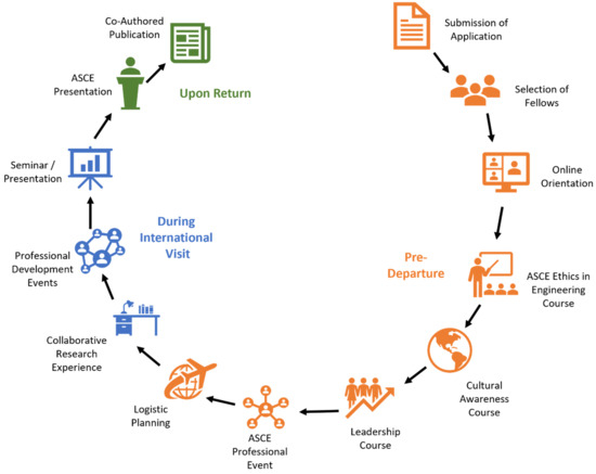 Before the students travel to their host institution, they, together with their domestic advisor, are required to attend an online general orientation session that provides information about the objectives and expectations of the program, research and data collection measures associated with the participation, collaboration with ASCE, potential benefits of participating, a timeline of events, financial support and logistic planning.