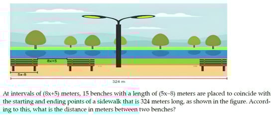 Three weeks after the WEI4S intervention, a transfer question that included a dissimilar question (i.e., a far transfer question [53,54]) was conducted with a post-test. The objective of the transfer question was the same as that of the post-test. However, this problem was not similar to the questions previously solved. The maximum score that could be achieved was 10. The scoring of the question was the same as for the AAT-CK tests (pre and post). The problem is given below. According to the teachers of the participants, the problem requires highly demanding setting up of an equation.