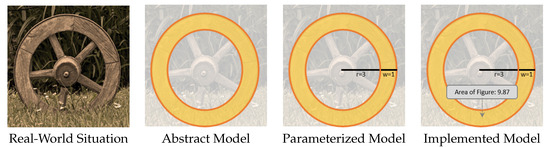 To enhance clarity, this article introduces an expansive use of the term model, distinguishing among abstract, parameterized, and implemented models—as illustrated in Figure 1: To enable a mathematical approach to a problem, a real-world problem (e.g., estimating the time to evacuate a building) can be modelled using an abstract model (e.g., a grid automaton). This abstract model can then be applied to a specific real-world situation (e.g., estimating the time to evacuate a given sports hall) by selecting a suitable parameter (e.g., two cells for the width of the hallway in this sports hall), leading to a parameterized model. In practice, the calculations of a model are frequently automated with technology. In this case, the abstract and parameterized model have to be implemented using technology, leading to an implemented model. This distinction is especially important when discrepancies arise between parameterized and implemented models due to implementation errors.