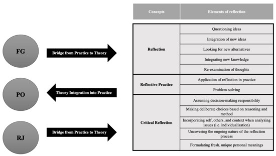 - Marshall, T. The concept of reflection: A systematic review and thematic synthesis across professional contexts. Reflective Pract. 2019, 20, 396–415. [Google Scholar] [CrossRef]