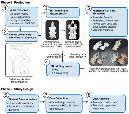 This project was conducted in two phases. Phase 1: production (including 3D modeling and fabrication), and phase 2: study design (including data collection and analysis). The overall methods are represented in the flowchart below (Figure 1).