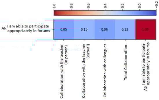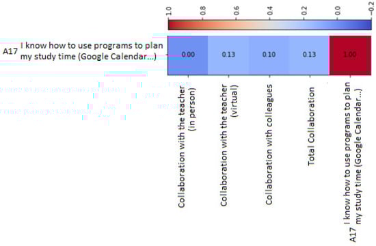 Figure 2. Correlation between skill A6 and collaboration. - A17: I know how to use programs to plan my study time (Figure 3);