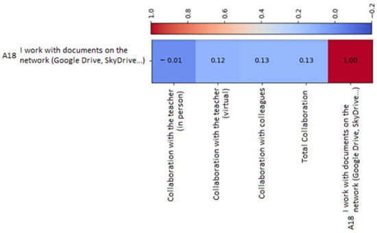 Figure 3. Correlation between skill A17 and collaboration. - A18: I work with documents on the network (Figure 4);