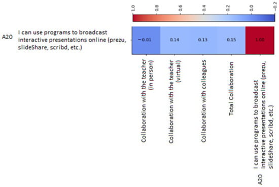 Figure 5. Correlation between skill A19 and collaboration. - A20: I can use programs to disseminate interactive presentations online (Figure 6);