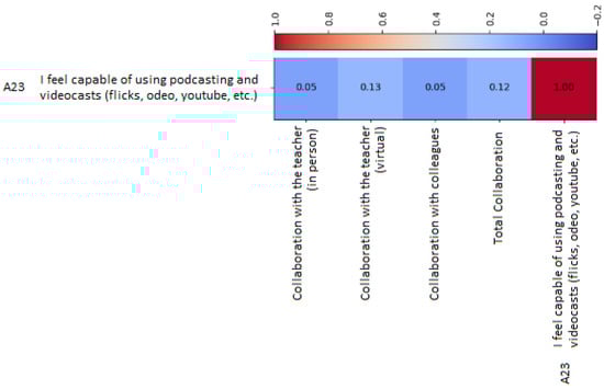 Figure 6. Correlation between skill A20 and collaboration. - A23: I feel capable of using podcasting and videocasts (Figure 7);