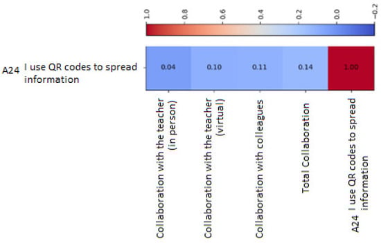 Figure 7. Correlation between skill A23 and collaboration. - A24: I use QR codes to disseminate information (Figure 8);
