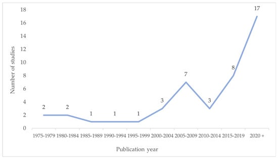 Number of studies published on professionals’ attitudes toward SAPs in the period from 1975 to 2023 (single coding, n = 45).