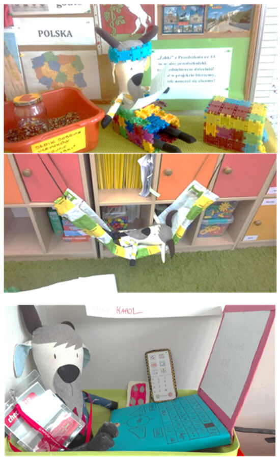 | Workshop no. 1 Let’s get to know each other | - Familiarization with the project themes and objectives - Integration of children with a little goat - Preparing a contract (agreement) between the children and the little goat - Preparing a creative corner for a little goat | The children give their parents envelopes with information about the project and a request to prepare a “signature” (photograph, handprint) to be attached to the contract prepared by the children. In this way, the parents are involved and informed about the activities and their objectives. During the following week, the children bring the so-called “rubbish” (clean, not smelly, safe to use unnecessary materials) to the little goat’s corner. |