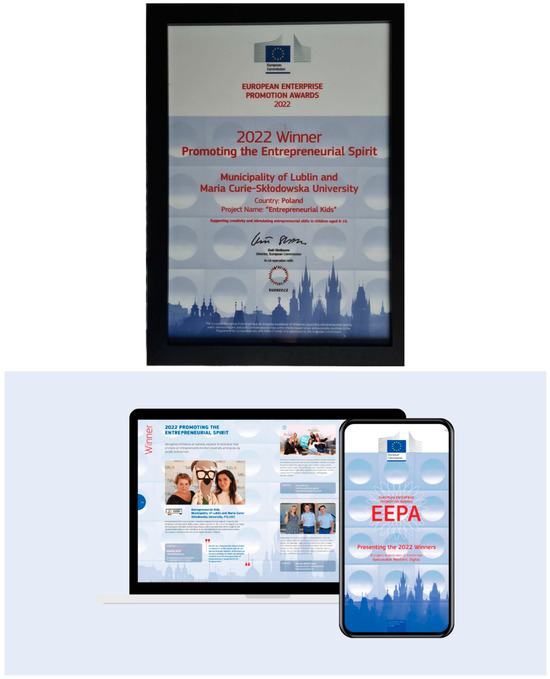 - Improvements in the quality of primary education by introducing a new modus operandi to establishments in Lublin, which targets young children and integrates the aims and tasks of shaping in them one of the key competencies—entrepreneurship.