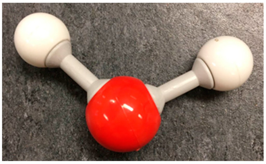 After the water-tasting experience, the teacher added another resource, a ball and stick model of water (see Figure 4), which represented the phenomenon at a submicroscopic level. The following dialogue occurred: