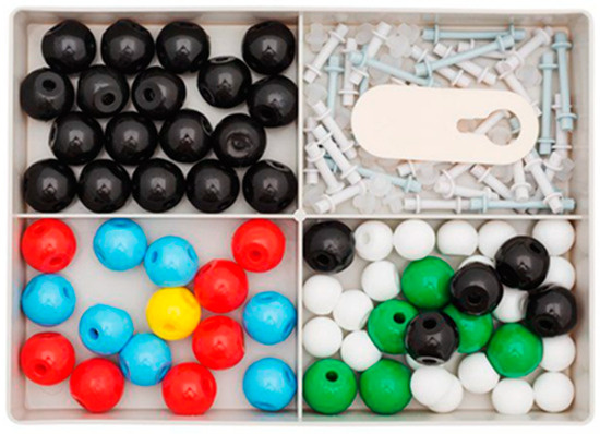 In this activity, the pupils built molecular models with ball and stick models (see Figure 6). The pupils were divided into pairs or small groups and had access to a whole box with balls of different colors (symbolizing atoms) and sticks of different lengths (symbolizing the bonds between the atoms).